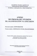 Zbiór kart przedmiotów do programu studiów dla kandydatów na żołnierzy zawodowych : jednolite studia magisterskie : kierunek : dowodzenie E-2021. Cz. 1- ANEKS 3