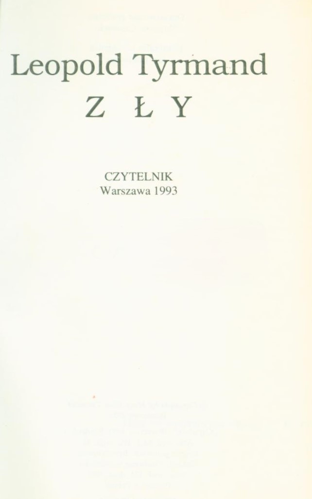 Zły / Leopold Tyrmand. - Wyd. 6. - Warszawa : Czytelnik, 1993. - 654 s. ; 21 cm.
