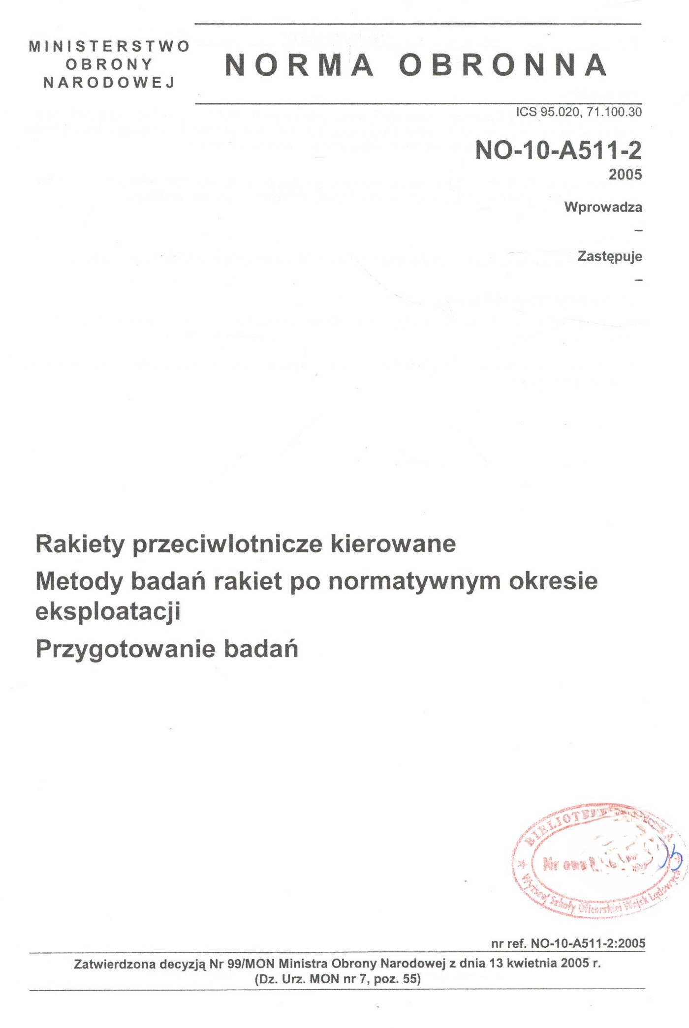 Zatwierdzona decyzją Nr 99/MON Ministra Obrony Narodowej z dnia 13 kwietnia 2005 r. (Dz. Urz. MON nr 7, poz. 55).