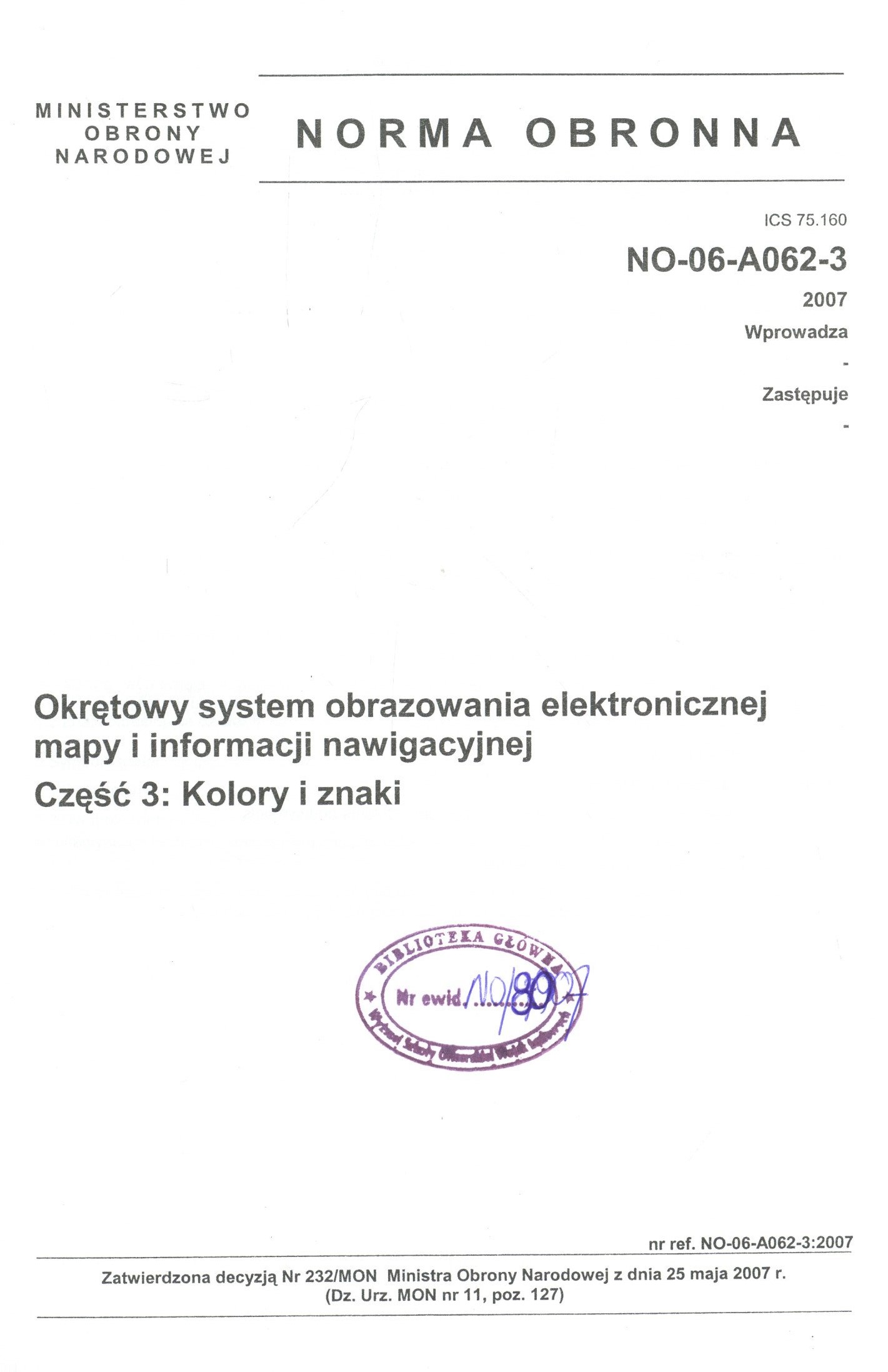 Zatwierdzona decyzją Nr 232/MON Ministra Obrony Narodowej z dnia 25 maja 2007 r. (Dz. Urz. MON nr 11, poz. 127).