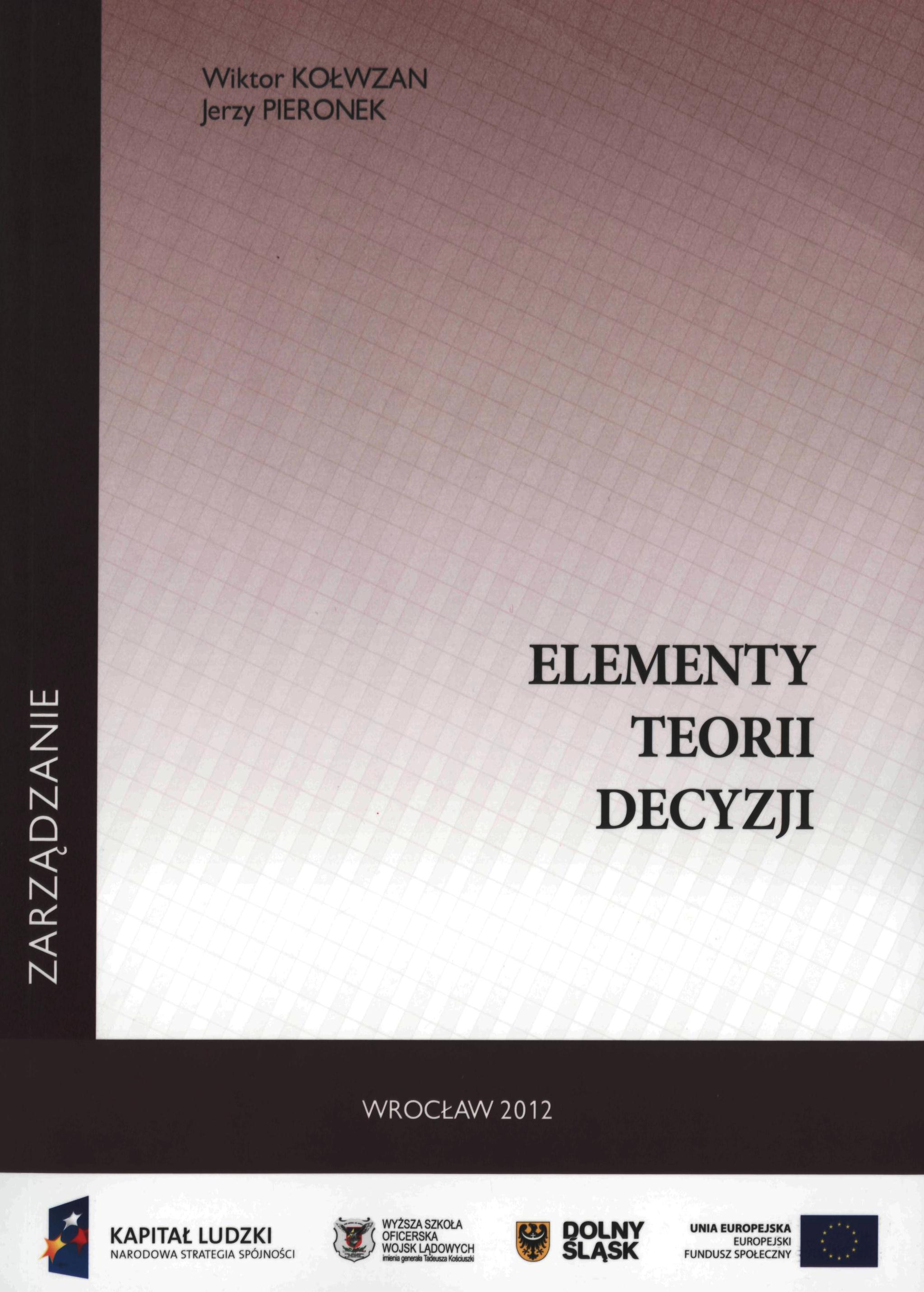 Elementy teorii decyzji / Wiktor Kołwzan, Jerzy Pieronek. - Wrocław : WSOWL, 2012. - 326 s. : il., 1 zał. ; 25 cm.