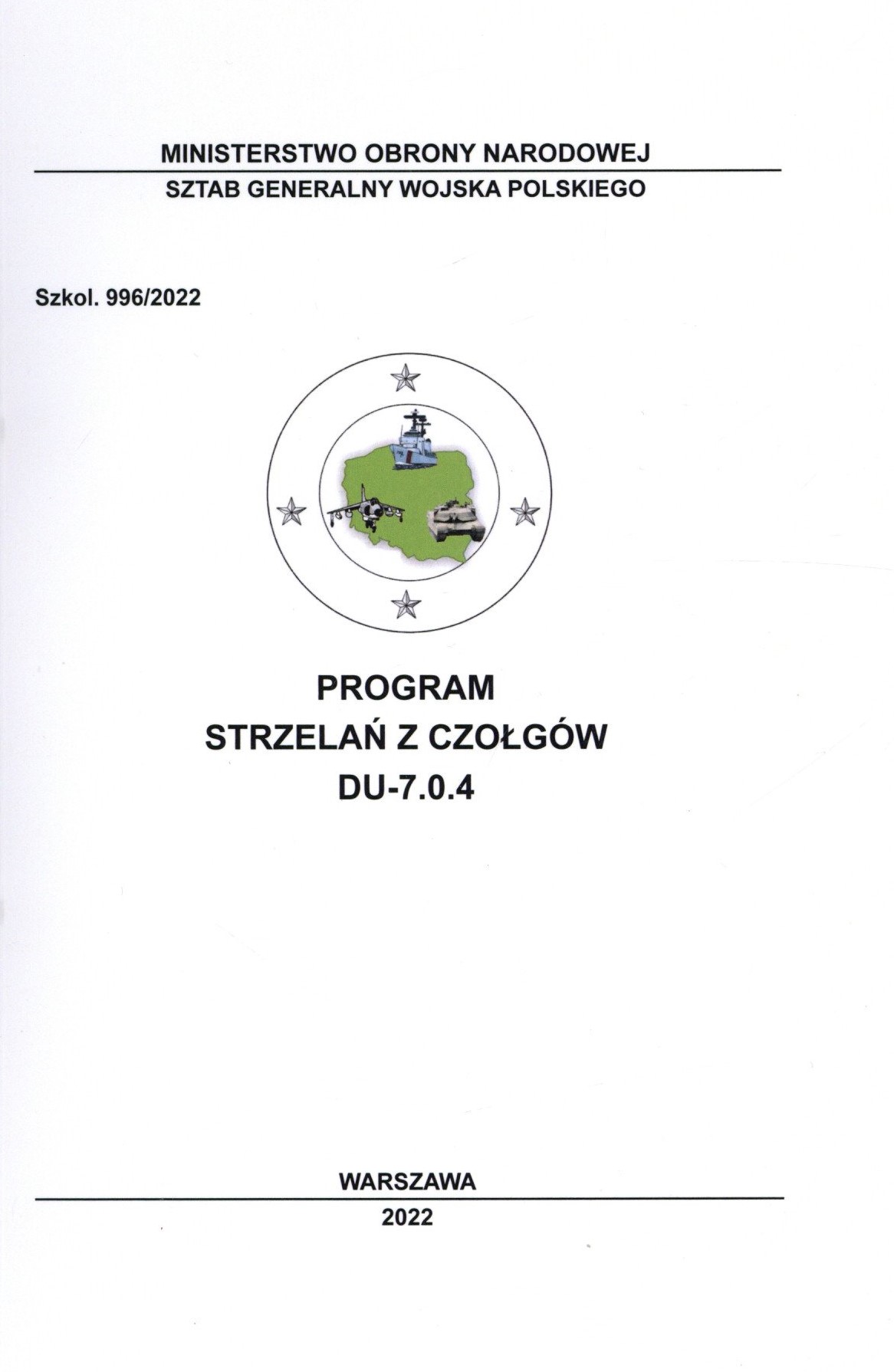 Program strzelań z czołgów : DU-7.0.4 / Ministerstwo Obrony Narodowej. Sztab Generalny Wojska Polskiego. - Obowiązuje od 01 stycznia 2023 r. - Warszawa : MON. Szt. Gen. WP, 2022. - 122 s. : il., [16] zał. ; 24 cm.