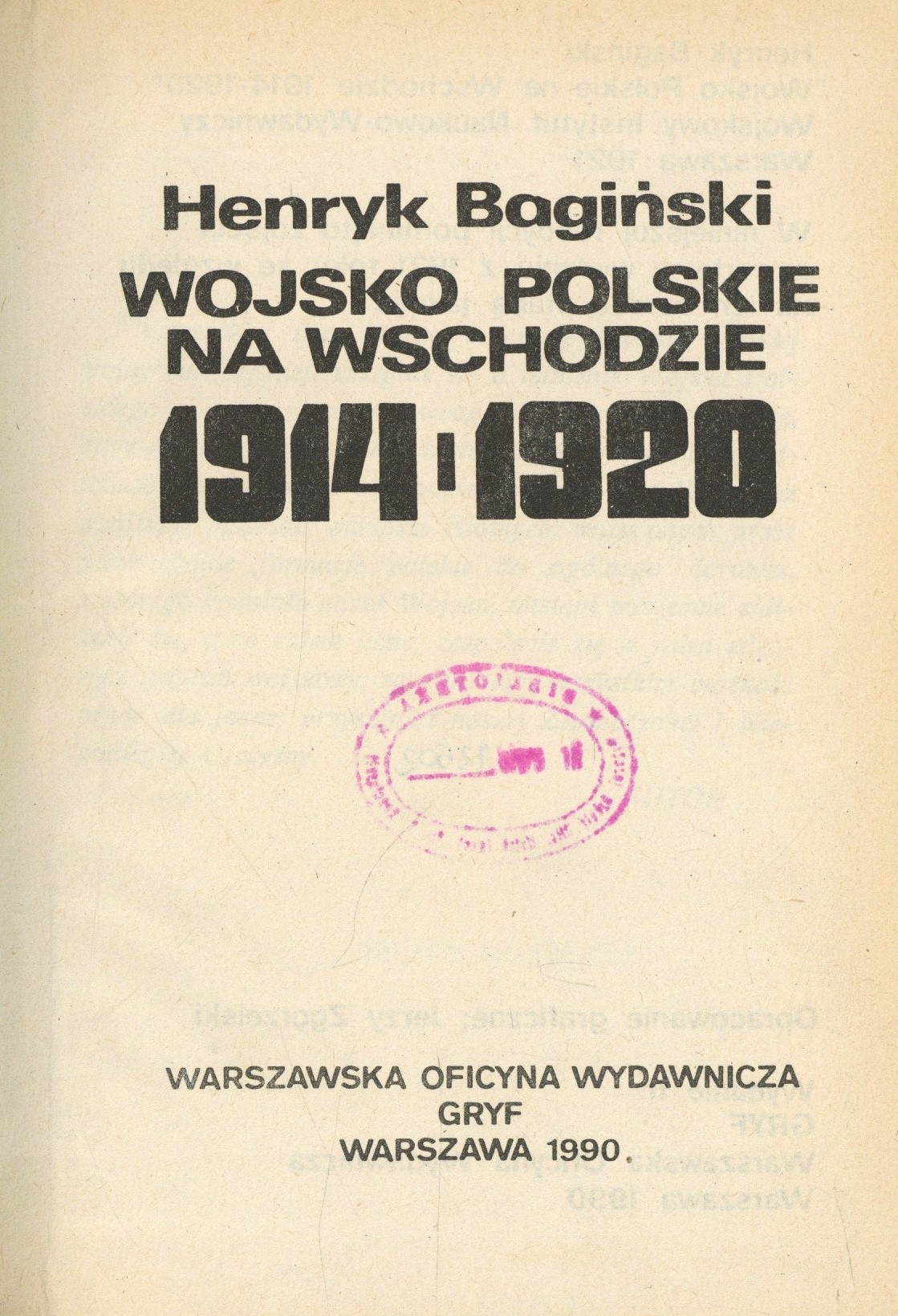 Wojsko polskie na wschodzie 1914 - 1920 / Henryk Bagiński. - Wyd. 2. - Warszawa : Gryf, 1990. - 598 s. : il., 5 map złoż. ; 21 cm.
