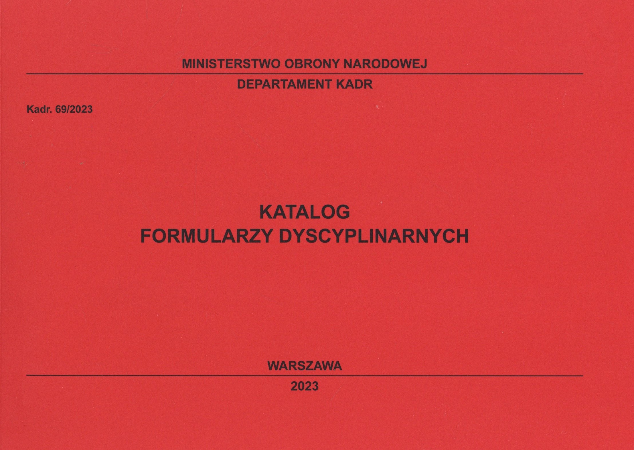 Katalog formularzy dyscyplinarnych / Ministerstwo Obrony Narodowej. Departament Kadr. - Obowiązuje od 9 maja 2023 r. - Warszawa : MON. DK, 2023. - 19 s. ; 22x30 cm.