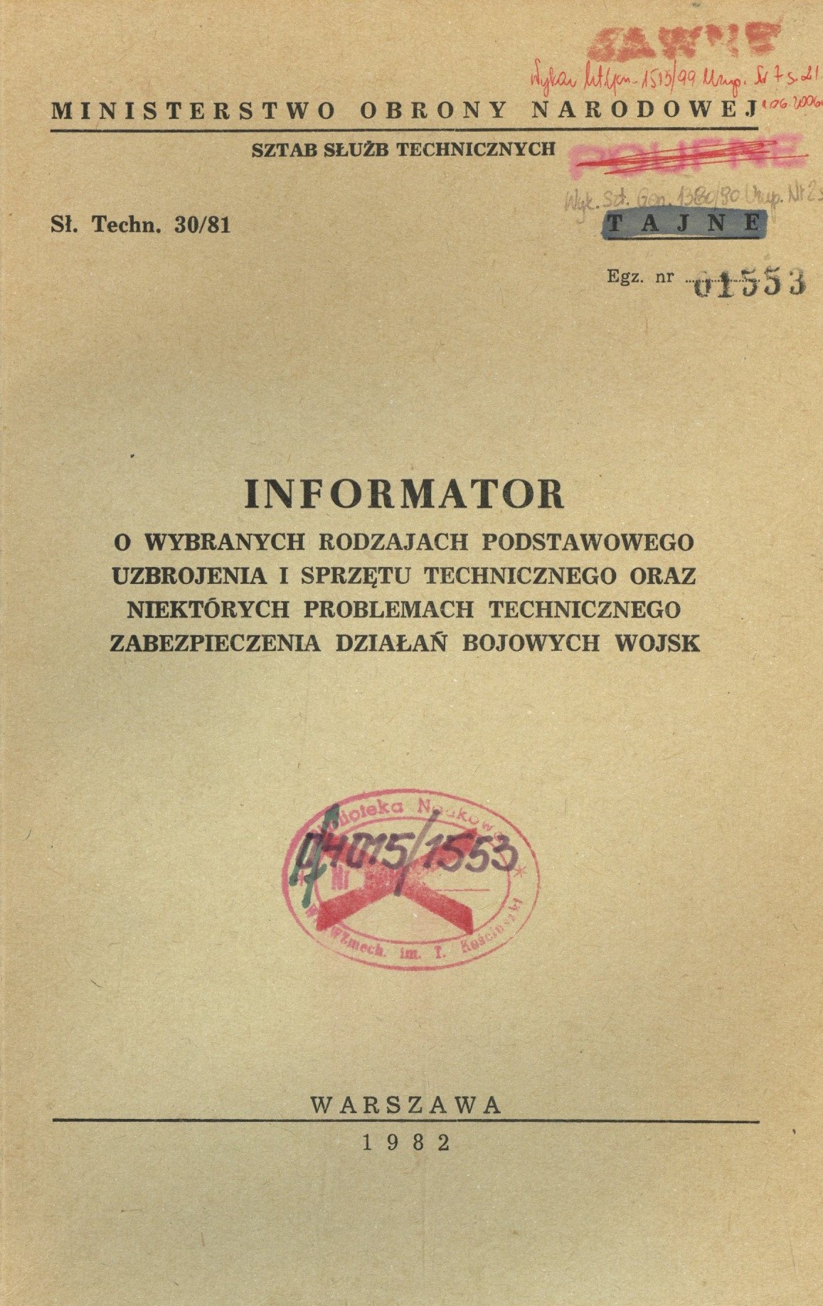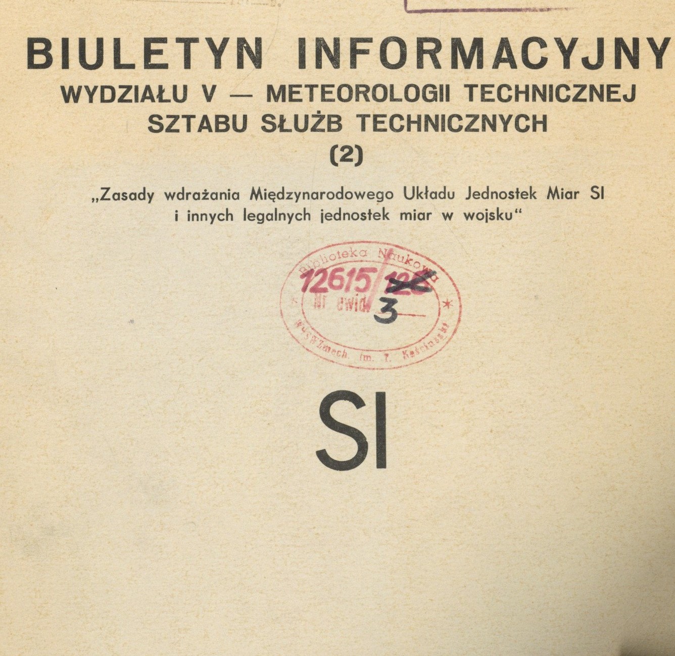 Na okł i s. tyt. błędny tytuł : Biuletyn Informacyjny Wydziału V - Meteorologii Technicznej Sztabu Służb Technicznych.
