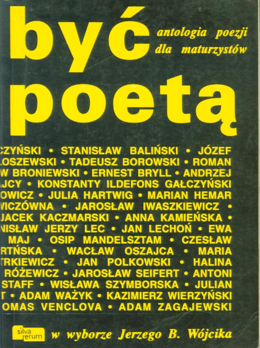 Być poetą : antologia poezji dla maturzystów / wybór Jerzy B. Wójcik. - Wyd. 2 popr. i uzup. - Gorzów Wielkopolski : Silva Rerum, 1992. - 304 s. ; 21 cm.