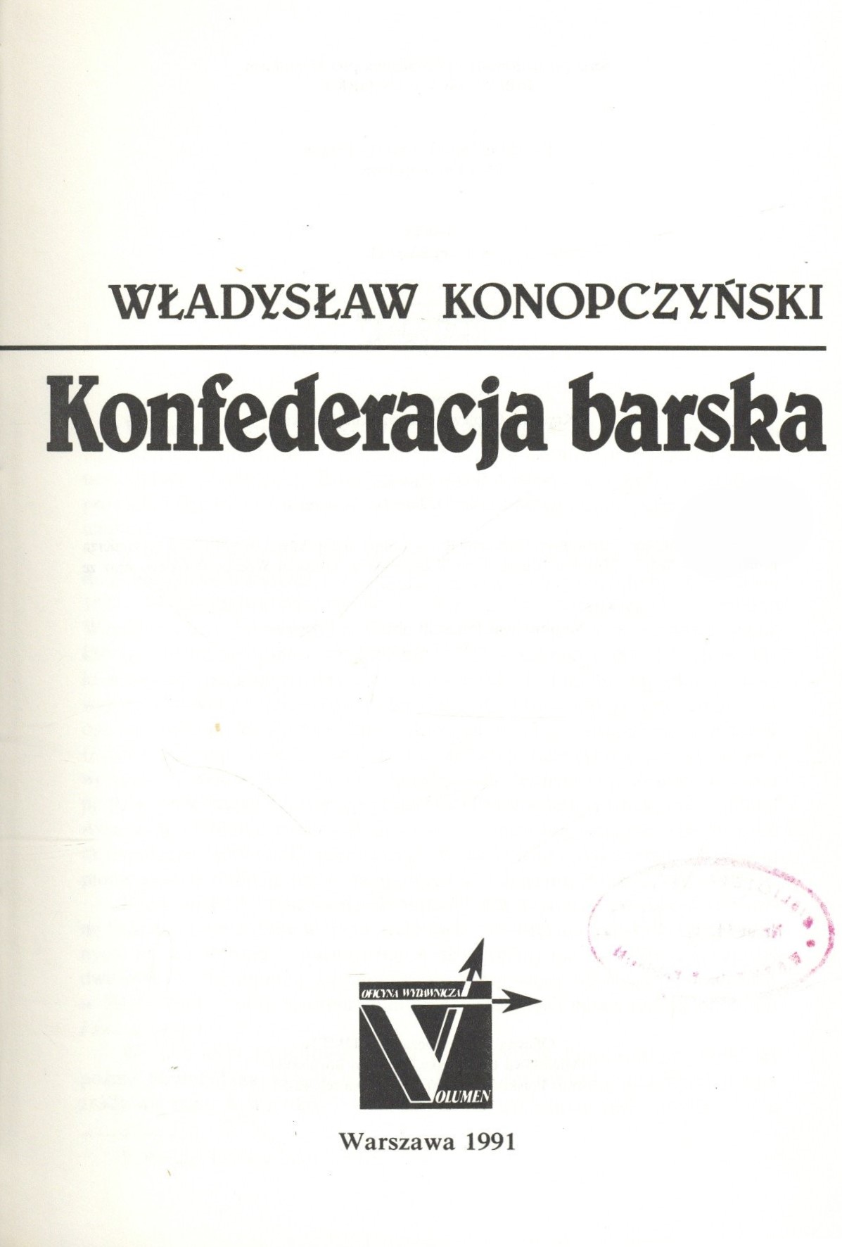 Konfederacja barska. T. 1 / Władysław Konopczyński. - Wyd. 2, pierwsze po wojnie. - Warszawa : Volumen, 1991. - 438 s, [16] k. tabl. ; 25 cm.